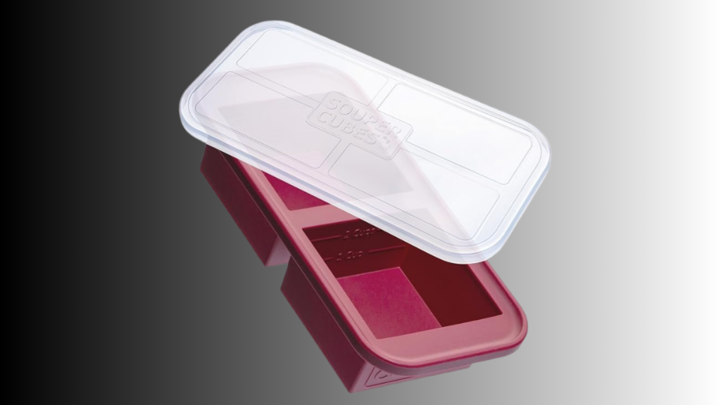 Souper Cubes Silicone Freezer Tray with Lids offer portioned freezer molds with locking lids for proper food storage.